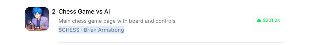 Fun fact: the second most valuable game on the platform (~$21K market cap) is a chess app built by Brian Armstrong, CEO of Coinbase, a perfect example of the current speculative nature of the platform.